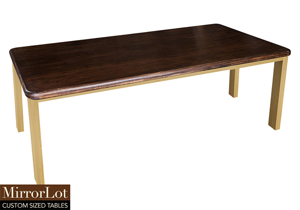 This bronze walnut stained table is simple, yet has a classic and rustic look that never goes out of style. It is rectangular with smooth rounded edges, but can customized to your desired shape and size. The rectangle shape table top is made from solid poplar wood and the table legs are