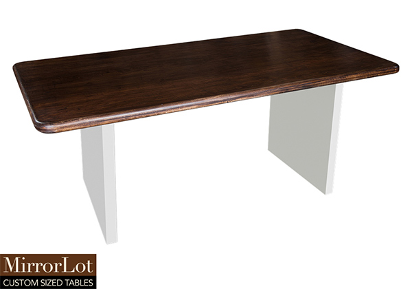 This bronze walnut stained table is simple, yet has a classic and rustic look that never goes out of style. It is rectangular with smooth rounded edges, but can customized to your desired shape and size. The rectangle shape table top is made from solid poplar wood and the table legs are