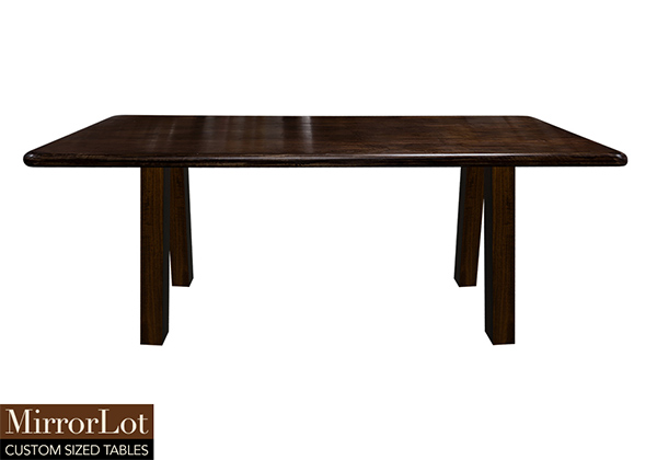 This bronze walnut stained table is simple, yet has a classic and rustic look that never goes out of style. It is rectangular with smooth rounded edges, but can customized to your desired shape and size. The rectangle shape table top is made from solid poplar wood and the table legs are