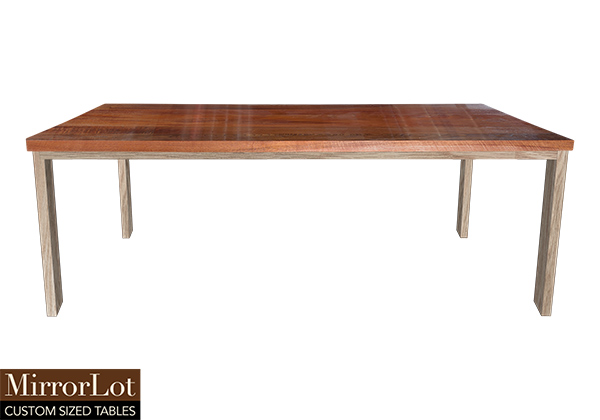 Wood & finish: Natural african mahogany table top and natural red oak table legs