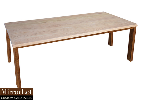 This natural red oak table brings rustic charm to any room in your house. It is rectangular with 4 beveled corners, but can be customized to your desired shape and size. The rectangle shape table top is made from solid red oak wood and the table legs are