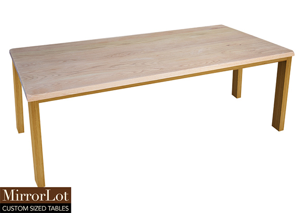 This natural red oak table brings rustic charm to any room in your house. It is rectangular with 4 beveled corners, but can be customized to your desired shape and size. The rectangle shape table top is made from solid red oak wood and the table legs are