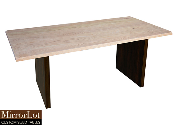 Wood & finish: Natural red oak table top and bronze walnut stained table legs