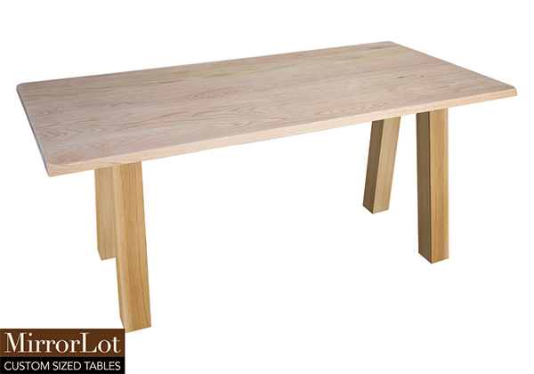 This natural red oak table brings rustic charm to any room in your house. It is rectangular with 4 beveled corners, but can be customized to your desired shape and size. The rectangle shape table top is made from solid red oak wood and the table legs are