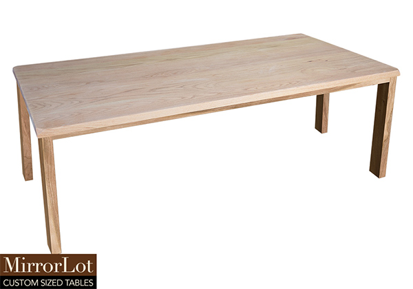 This natural red oak table brings rustic charm to any room in your house. It is rectangular with 4 beveled corners, but can be customized to your desired shape and size. The rectangle shape table top is made from solid red oak wood and the table legs are
