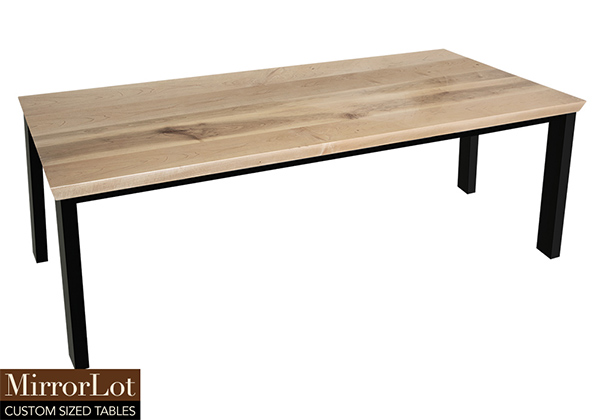 This natural maple table brings rustic charm to any room in your house. It is rectangular with a beveled edge, but can be customized to your desired shape and size. The rectangle shape table top is made from solid maple wood and the table legs are