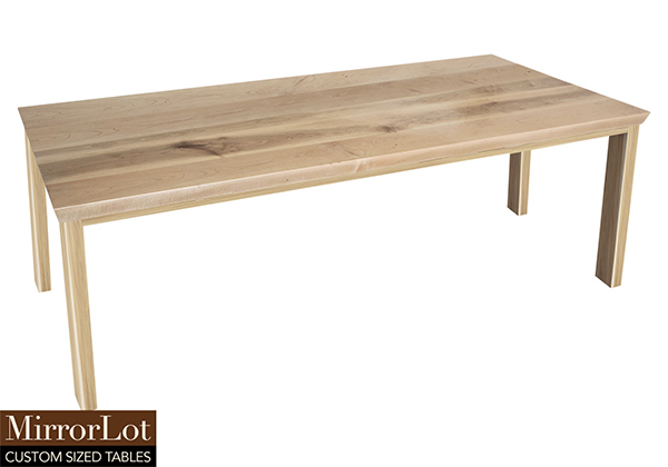 This natural maple table brings rustic charm to any room in your house. It is rectangular with a beveled edge, but can be customized to your desired shape and size. The rectangle shape table top is made from solid maple wood and the table legs are