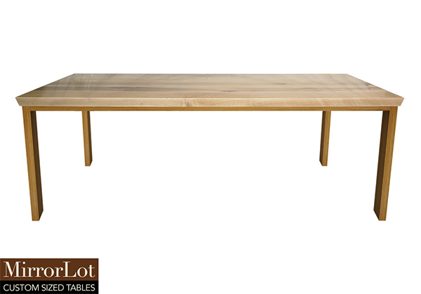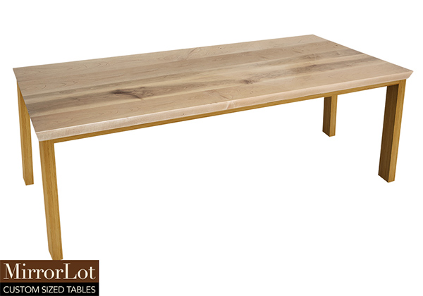This natural maple table brings rustic charm to any room in your house. It is rectangular with a beveled edge, but can be customized to your desired shape and size. The rectangle shape table top is made from solid maple wood and the table legs are