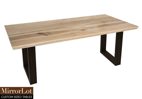 This natural maple table brings rustic charm to any room in your house. It is rectangular with a beveled edge, but can be customized to your desired shape and size. The rectangle shape table top is made from solid maple wood and the table legs are