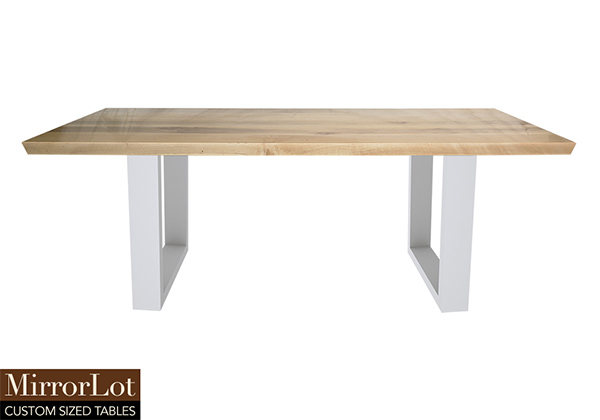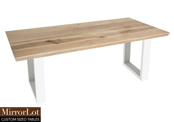 This natural maple table brings rustic charm to any room in your house. It is rectangular with a beveled edge, but can be customized to your desired shape and size. The rectangle shape table top is made from solid maple wood and the table legs are