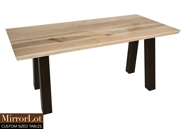 This natural maple table brings rustic charm to any room in your house. It is rectangular with a beveled edge, but can be customized to your desired shape and size. The rectangle shape table top is made from solid maple wood and the table legs are