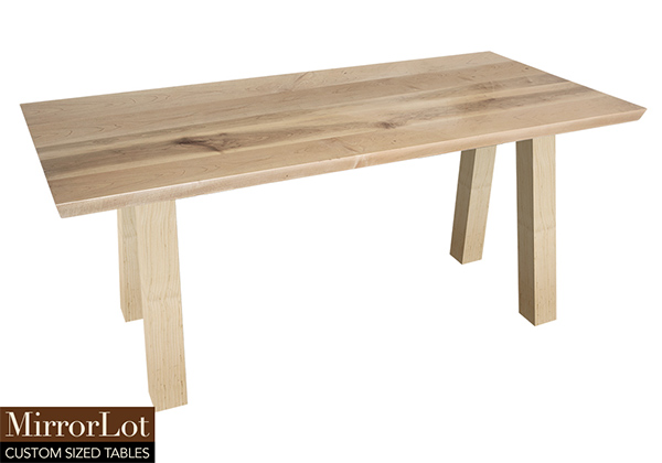 This natural maple table brings rustic charm to any room in your house. It is rectangular with a beveled edge, but can be customized to your desired shape and size. The rectangle shape table top is made from solid maple wood and the table legs are