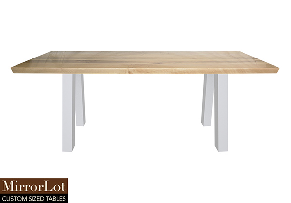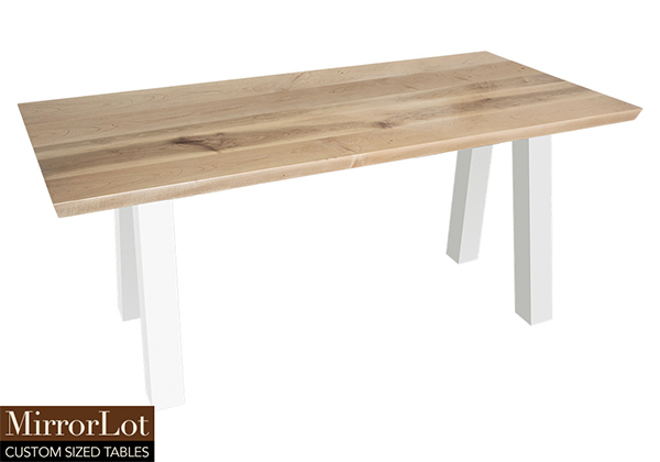 This natural maple table brings rustic charm to any room in your house. It is rectangular with a beveled edge, but can be customized to your desired shape and size. The rectangle shape table top is made from solid maple wood and the table legs are