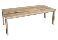 This natural maple table brings rustic charm to any room in your house. It is rectangular with a beveled edge, but can be customized to your desired shape and size. The rectangle shape table top is made from solid maple wood and the table legs are