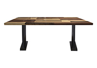 This mixed wood table is a combination solid mahogany, walnut, and poplar wood. It displays a contemporary design with a rustic flair. It is rectangular, but can be customized to your desired shape and size. The rectangle shape table top is made from solid walnut, mahogany, poplar wood and the table legs are
