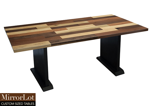 Wood & finish: Mix of natural mahogany, walnut, and poplar table top and black table legs