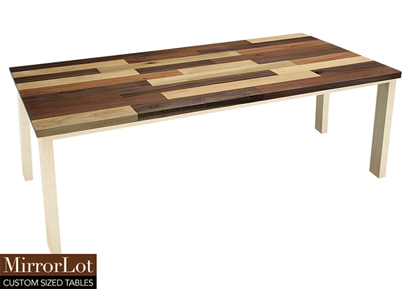 Wood & finish: Mix of natural mahogany, walnut, and poplar table top and natural maple table legs
