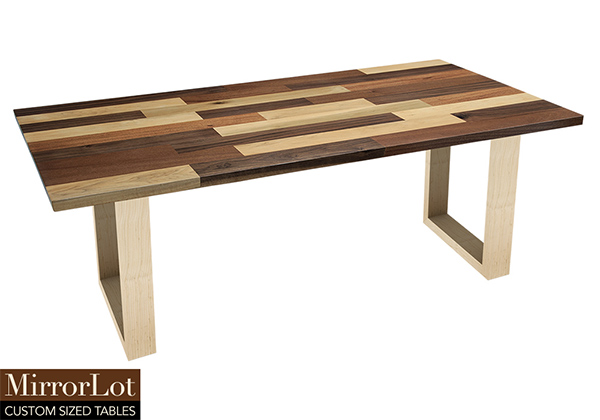 Wood & finish: Mix of natural mahogany, walnut, and poplar table top and natural maple table legs