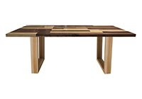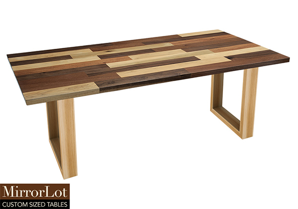This mixed wood table is a combination solid mahogany, walnut, and poplar wood. It displays a contemporary design with a rustic flair. It is rectangular, but can be customized to your desired shape and size. The rectangle shape table top is made from solid walnut, mahogany, poplar wood and the table legs are