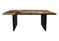 This mixed wood table is a combination solid mahogany, walnut, and poplar wood. It displays a contemporary design with a rustic flair. It is rectangular, but can be customized to your desired shape and size. The rectangle shape table top is made from solid walnut, mahogany, poplar wood and the table legs are