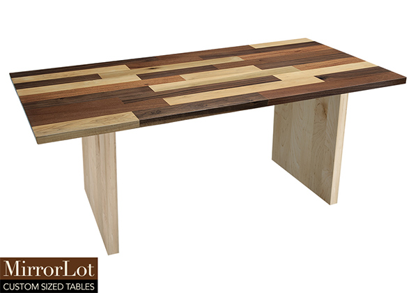 Wood & finish: Mix of natural mahogany, walnut, and poplar table top and natural maple table legs