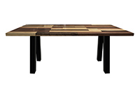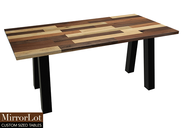 This mixed wood table is a combination solid mahogany, walnut, and poplar wood. It displays a contemporary design with a rustic flair. It is rectangular, but can be customized to your desired shape and size. The rectangle shape table top is made from solid walnut, mahogany, poplar wood and the table legs are