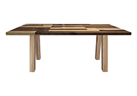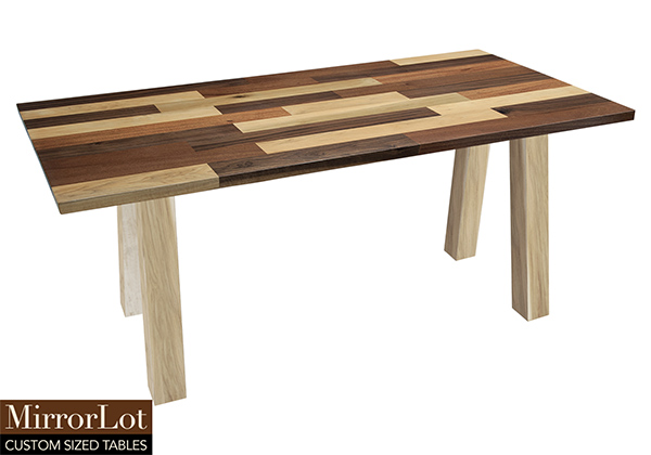 This mixed wood table is a combination solid mahogany, walnut, and poplar wood. It displays a contemporary design with a rustic flair. It is rectangular, but can be customized to your desired shape and size. The rectangle shape table top is made from solid walnut, mahogany, poplar wood and the table legs are