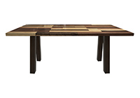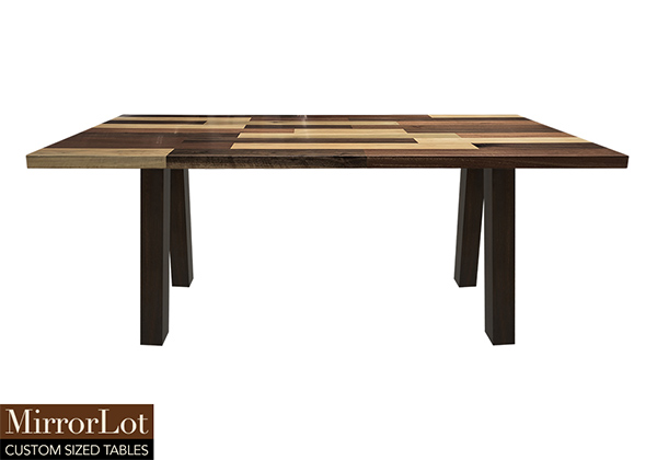 This mixed wood table is a combination solid mahogany, walnut, and poplar wood. It displays a contemporary design with a rustic flair. It is rectangular, but can be customized to your desired shape and size. The rectangle shape table top is made from solid walnut, mahogany, poplar wood and the table legs are