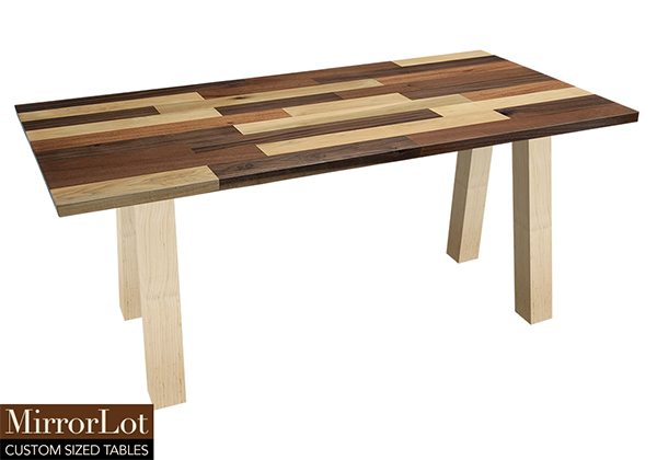Wood & finish: Mix of natural mahogany, walnut, and poplar table top and natural maple table legs