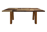 This mixed wood table is a combination solid mahogany, walnut, and poplar wood. It displays a contemporary design with a rustic flair. It is rectangular, but can be customized to your desired shape and size. The rectangle shape table top is made from solid walnut, mahogany, poplar wood and the table legs are