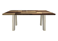 This mixed wood table is a combination solid mahogany, walnut, and poplar wood. It displays a contemporary design with a rustic flair. It is rectangular, but can be customized to your desired shape and size. The rectangle shape table top is made from solid walnut, mahogany, poplar wood and the table legs are