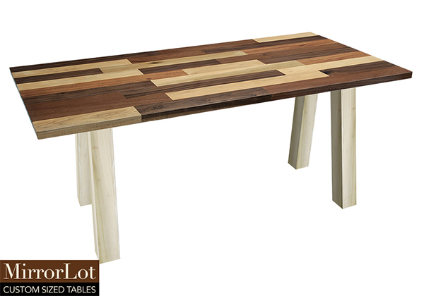 Wood & finish: Mix of natural mahogany, walnut, and poplar table top and natural poplar table legs