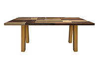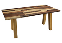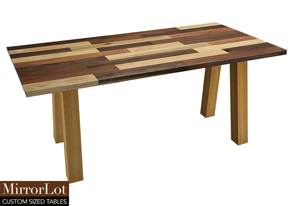 This mixed wood table is a combination solid mahogany, walnut, and poplar wood. It displays a contemporary design with a rustic flair. It is rectangular, but can be customized to your desired shape and size. The rectangle shape table top is made from solid walnut, mahogany, poplar wood and the table legs are