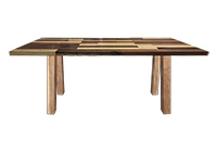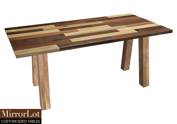 This mixed wood table is a combination solid mahogany, walnut, and poplar wood. It displays a contemporary design with a rustic flair. It is rectangular, but can be customized to your desired shape and size. The rectangle shape table top is made from solid walnut, mahogany, poplar wood and the table legs are