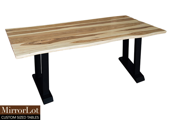 This natural pecan hickory table brings rustic charm to any room in your house. It is rectangular with a live edge, but can be customized to your desired shape and size. The live edge shape table top is made from solid pecan hickory wood and the table legs are