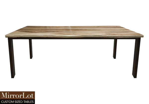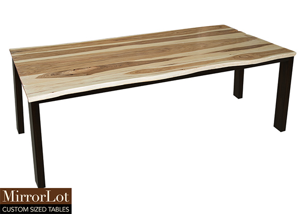 This natural pecan hickory table brings rustic charm to any room in your house. It is rectangular with a live edge, but can be customized to your desired shape and size. The live edge shape table top is made from solid pecan hickory wood and the table legs are