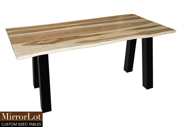 This natural pecan hickory table brings rustic charm to any room in your house. It is rectangular with a live edge, but can be customized to your desired shape and size. The live edge shape table top is made from solid pecan hickory wood and the table legs are