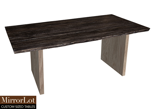 This dark rustic table with white reclaimed texture brings rustic charm to any room in your house. It is rectangular with a live edge, but can be customized to your desired shape and size. The live edge shape table top is made from solid poplar wood and the table legs are