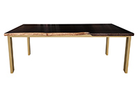 Wood & finish: Dark espresso stained with bronze edge table top and natural supreme alder table legs