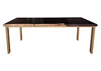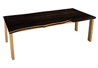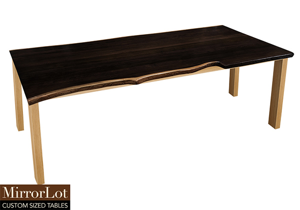 This dark espresso stained table brings rustic charm to any room in your house. It is rectangular with a bronze live edge, but can be customized to your desired shape and size. The live edge shape table top is made from solid poplar wood and the table legs are