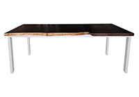 Wood & finish: Dark espresso stained with bronze edge table top and white table legs