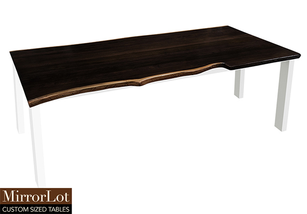 This dark espresso stained table brings rustic charm to any room in your house. It is rectangular with a bronze live edge, but can be customized to your desired shape and size. The live edge shape table top is made from solid poplar wood and the table legs are