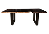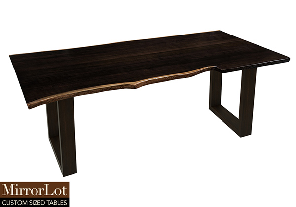 This dark espresso stained table brings rustic charm to any room in your house. It is rectangular with a bronze live edge, but can be customized to your desired shape and size. The live edge shape table top is made from solid poplar wood and the table legs are