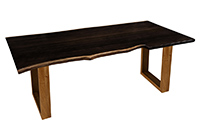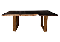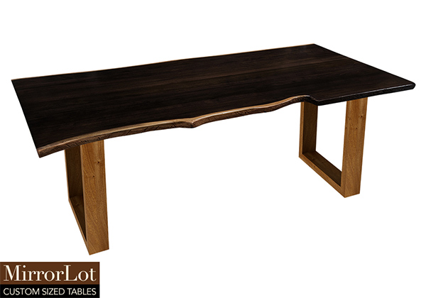 This dark espresso stained table brings rustic charm to any room in your house. It is rectangular with a bronze live edge, but can be customized to your desired shape and size. The live edge shape table top is made from solid poplar wood and the table legs are
