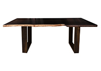 This dark espresso stained table brings rustic charm to any room in your house. It is rectangular with a bronze live edge, but can be customized to your desired shape and size. The live edge shape table top is made from solid poplar wood and the table legs are