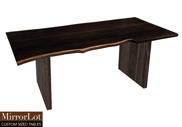 This dark espresso stained table brings rustic charm to any room in your house. It is rectangular with a bronze live edge, but can be customized to your desired shape and size. The live edge shape table top is made from solid poplar wood and the table legs are