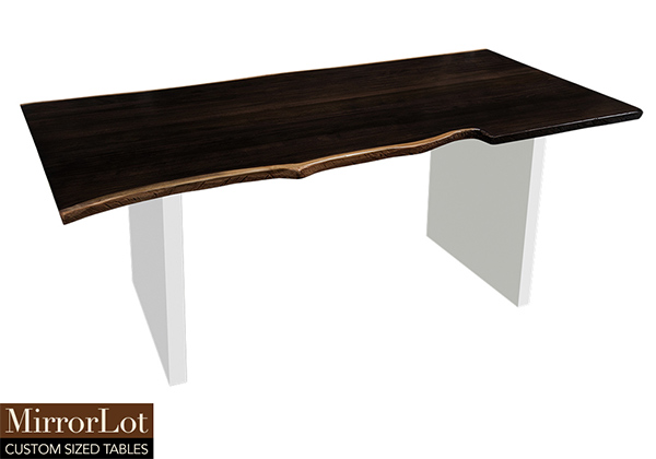 This dark espresso stained table brings rustic charm to any room in your house. It is rectangular with a bronze live edge, but can be customized to your desired shape and size. The live edge shape table top is made from solid poplar wood and the table legs are
