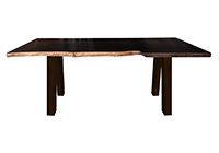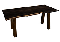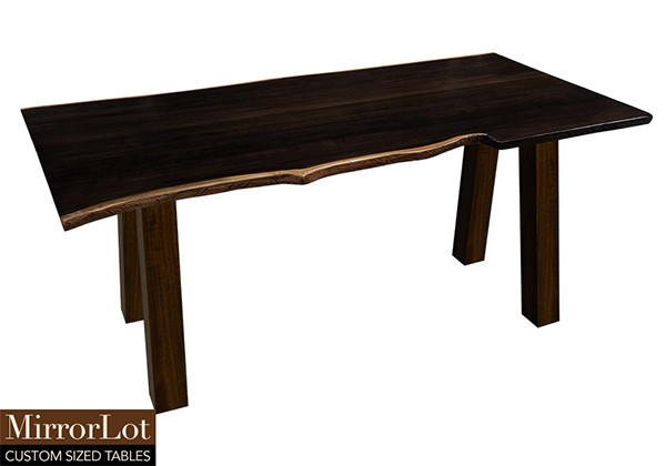 This dark espresso stained table brings rustic charm to any room in your house. It is rectangular with a bronze live edge, but can be customized to your desired shape and size. The live edge shape table top is made from solid poplar wood and the table legs are