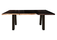 This dark espresso stained table brings rustic charm to any room in your house. It is rectangular with a bronze live edge, but can be customized to your desired shape and size. The live edge shape table top is made from solid poplar wood and the table legs are