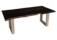 This dark espresso stained table brings rustic charm to any room in your house. It is rectangular with a bronze live edge, but can be customized to your desired shape and size. The live edge shape table top is made from solid poplar wood and the table legs are